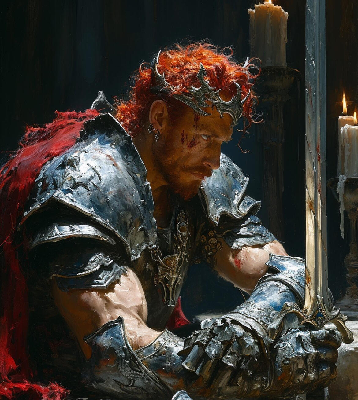 Sudrid grew up in a small town near Fyranthas. His father died from a magical curse when he was young, leaving his mother to care for him.When he was 13, his magical abilities manifested. He was attuned to the element of fire, just like his deceased father. He learned to master his element quickly, and at such a young age.When he was 22, he started secretly participating in the illegal fighting ring, in the city of Fyranthas. He did this in order to help his aging mother. With his fire magic, he was a natural competitor. He kept winning rounds after rounds, gaining the attention of the wrong people. One night, a group of men from the fighting ring followed him home, angry that they lost. They murdered his mother and beat Sudrid up, leaving him critically injured in the processA Goddess heard his prayers.. She came to him like a shining ray of moonlight. She healed his wounds and blessed him with godlike strength. The Goddess spoke to him as she departed, “Let justice be served..” She left as quickly as she appeared, allowing him to seek vengeance on the men that killed his mother.After that night, he packed his belongings and moved to the city of Fyranthas. He became a bounty hunter, hunting criminals and seeking justice for those who have been wronged, just like he was.